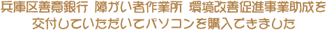兵庫区善意銀行 障がい者作業所 環境改善促進事業助成を交付していただいてパソコンを購入できました。