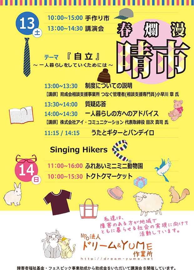 | 2017.04.12 | 春爛漫「晴市」を開催します! |