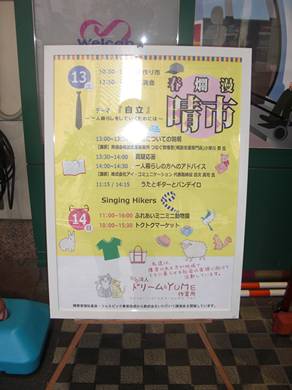 講演会、事業所の自主製品の販売、SingingHikersの歌と演奏