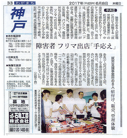 6月8日の神戸新聞に当事業所のかなえがフリーマーケットに参加したことが掲載されました。
