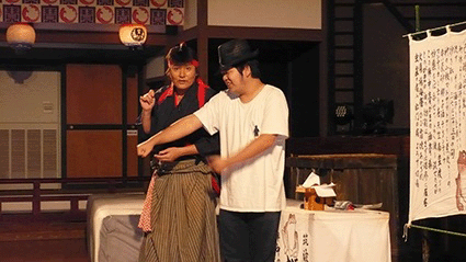 ガマの油に挑戦しました。忍者のショー、俳優の写真がいっぱいの館に行きました。
